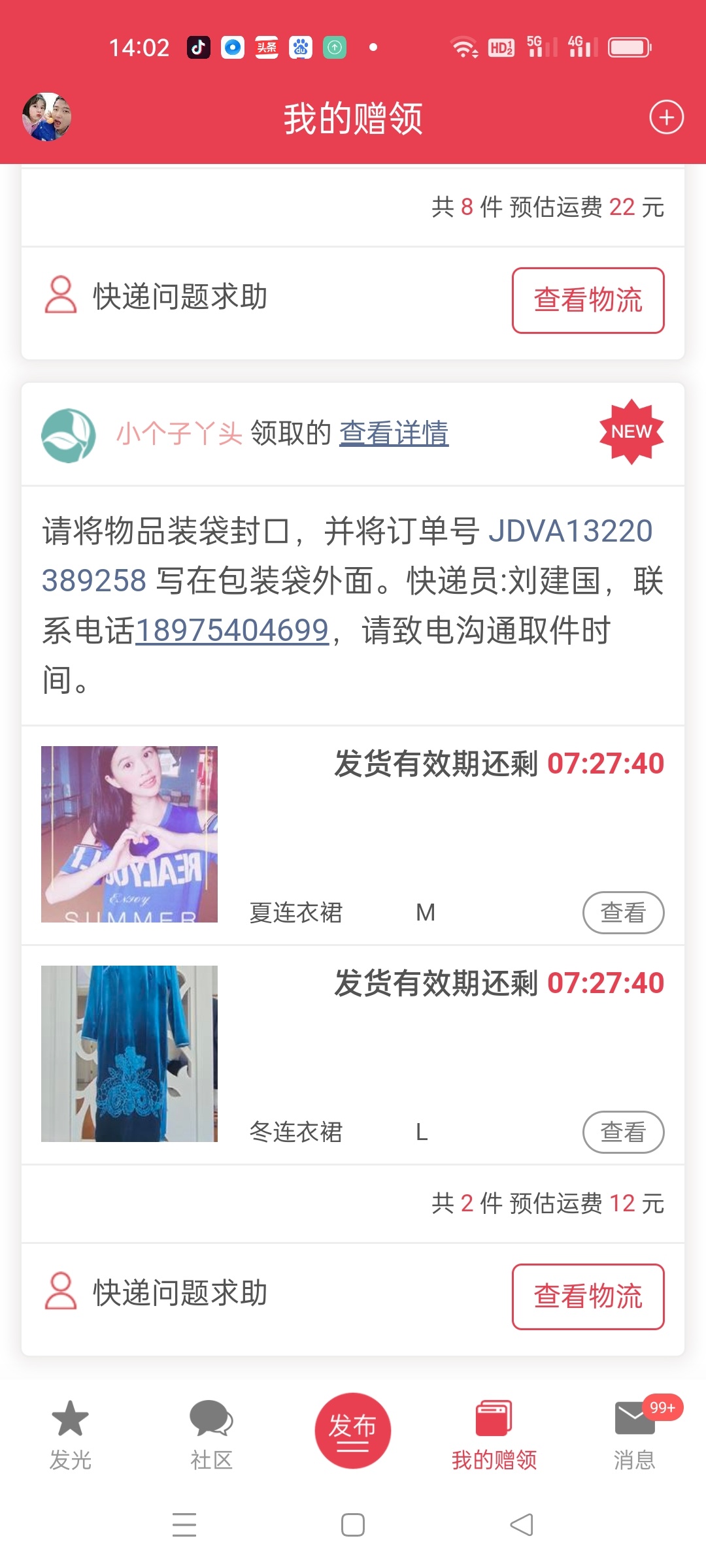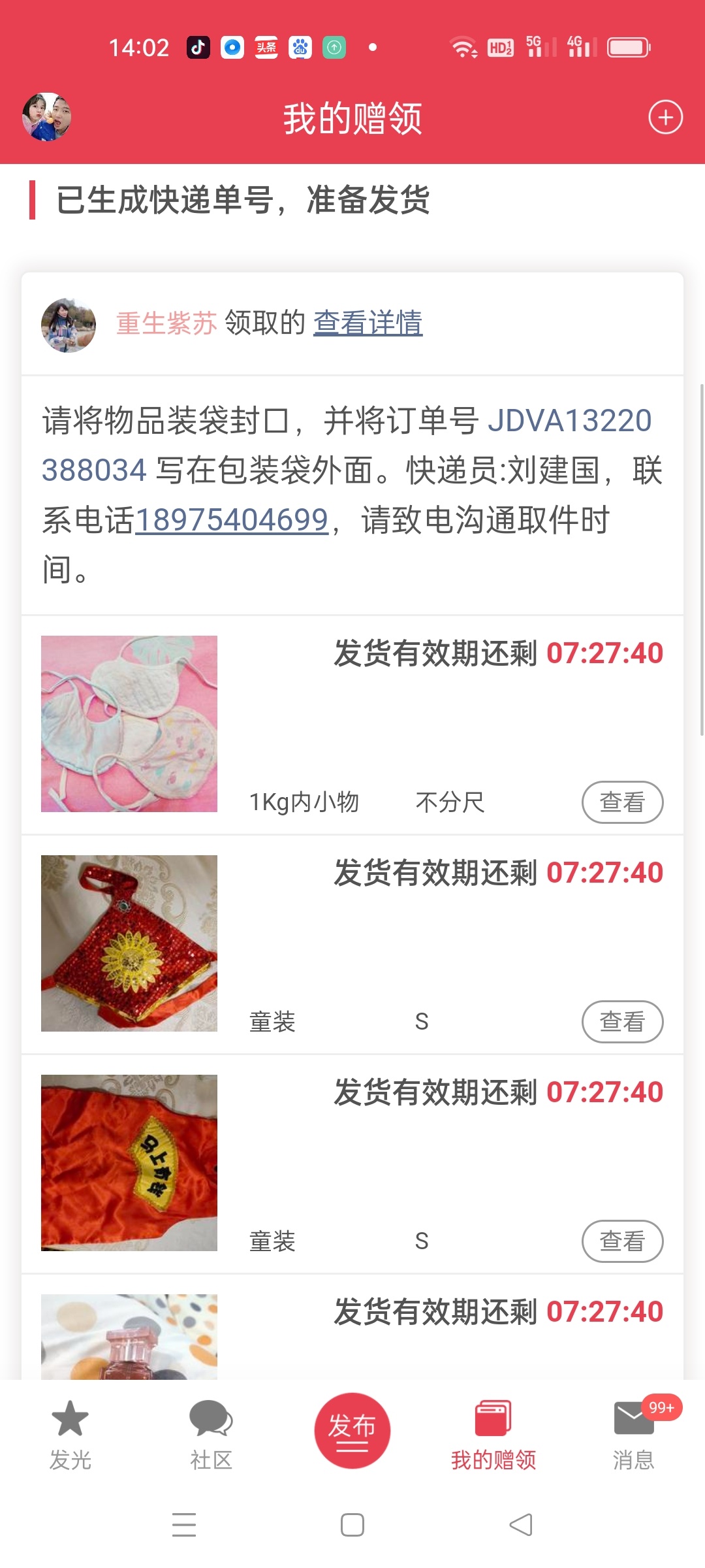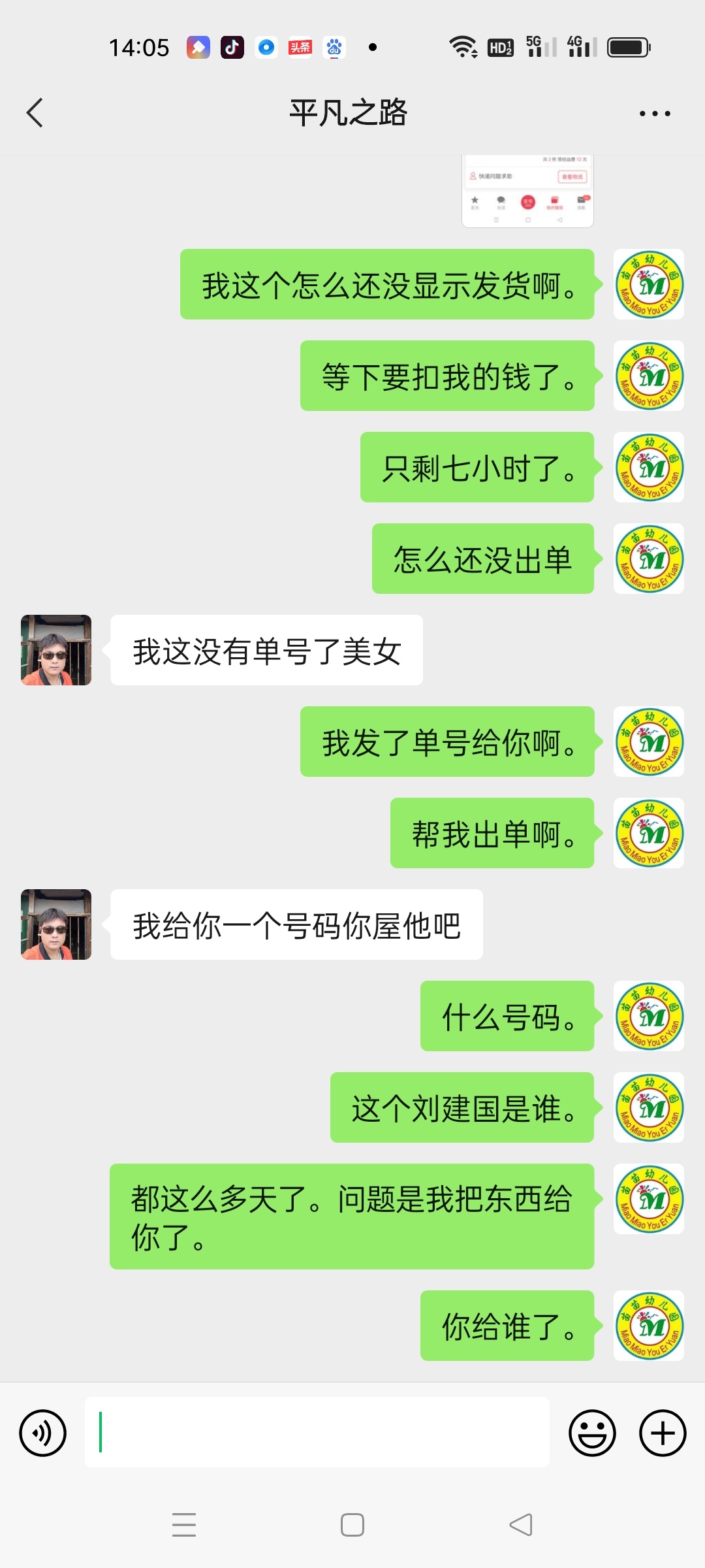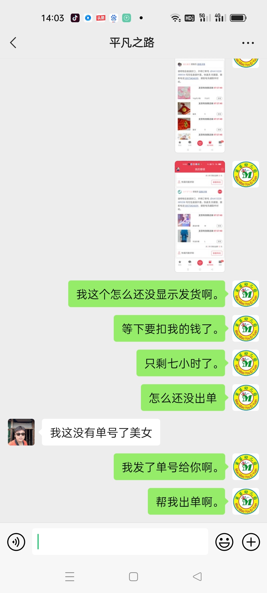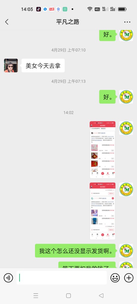 [已处理(发帖勿选)] 东西给快递员了,他一直没发货,说他没有单号。 |