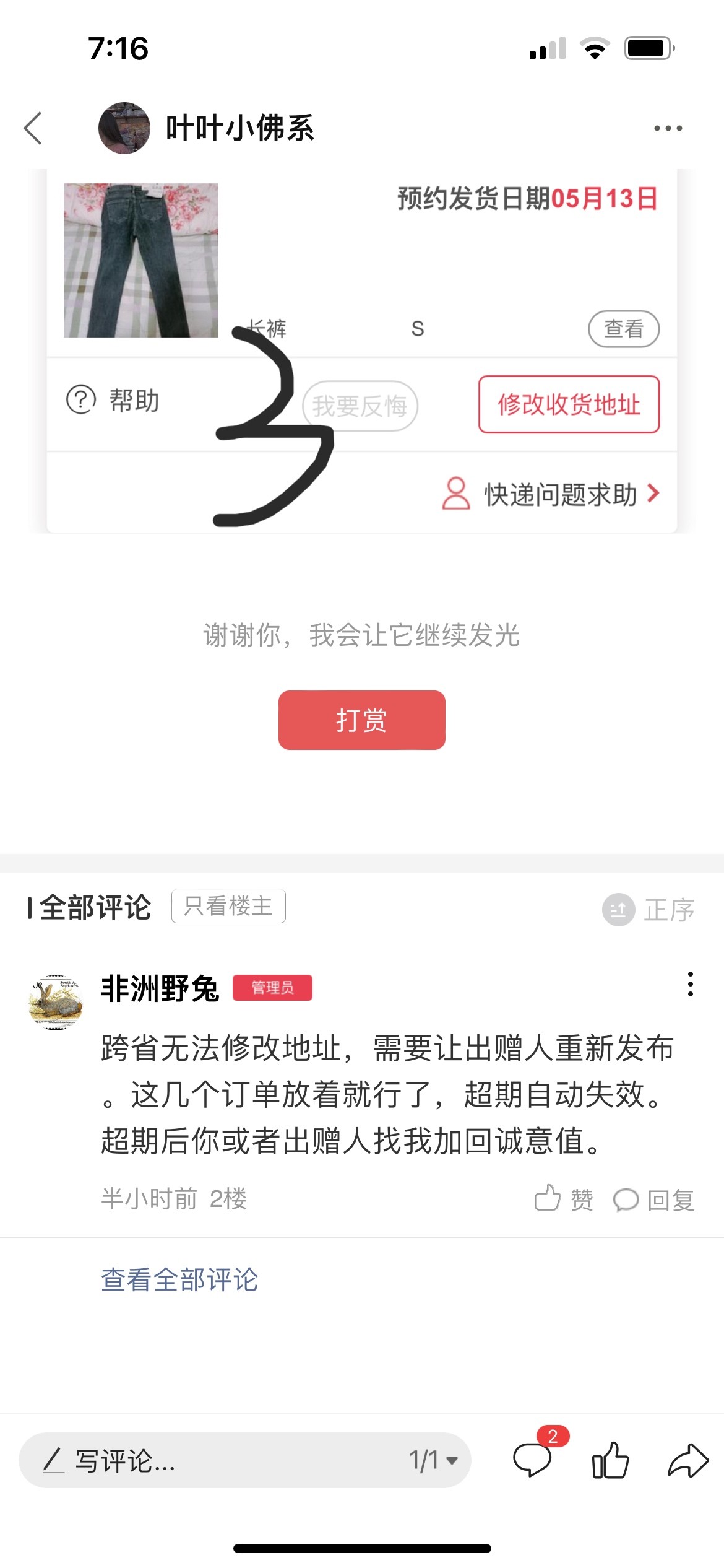 [已处理(发帖勿选)] 诚意值被扣,因为对方地址发不了货,所以只得等发货过... |
