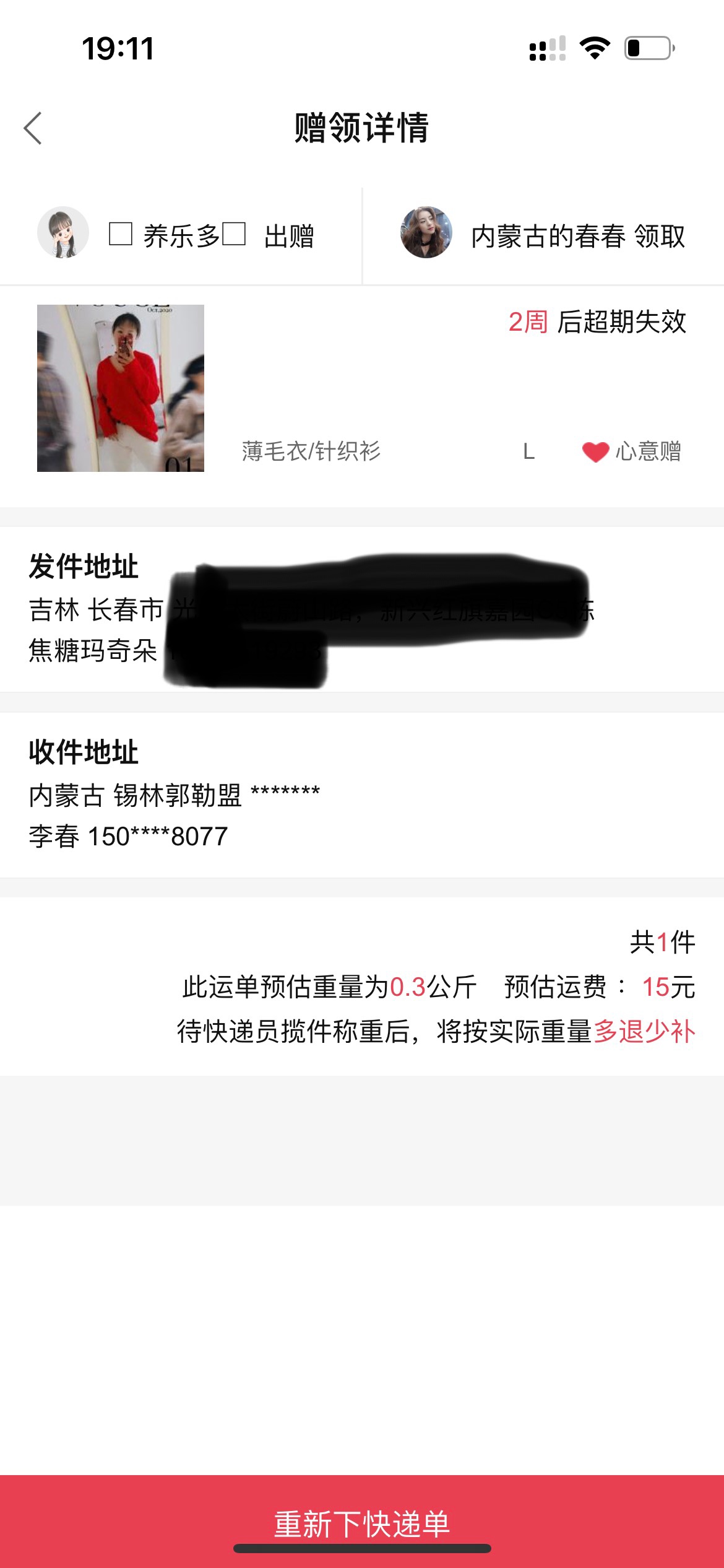 [已处理(发帖勿选)] 口罩原因,修改发货地址 |