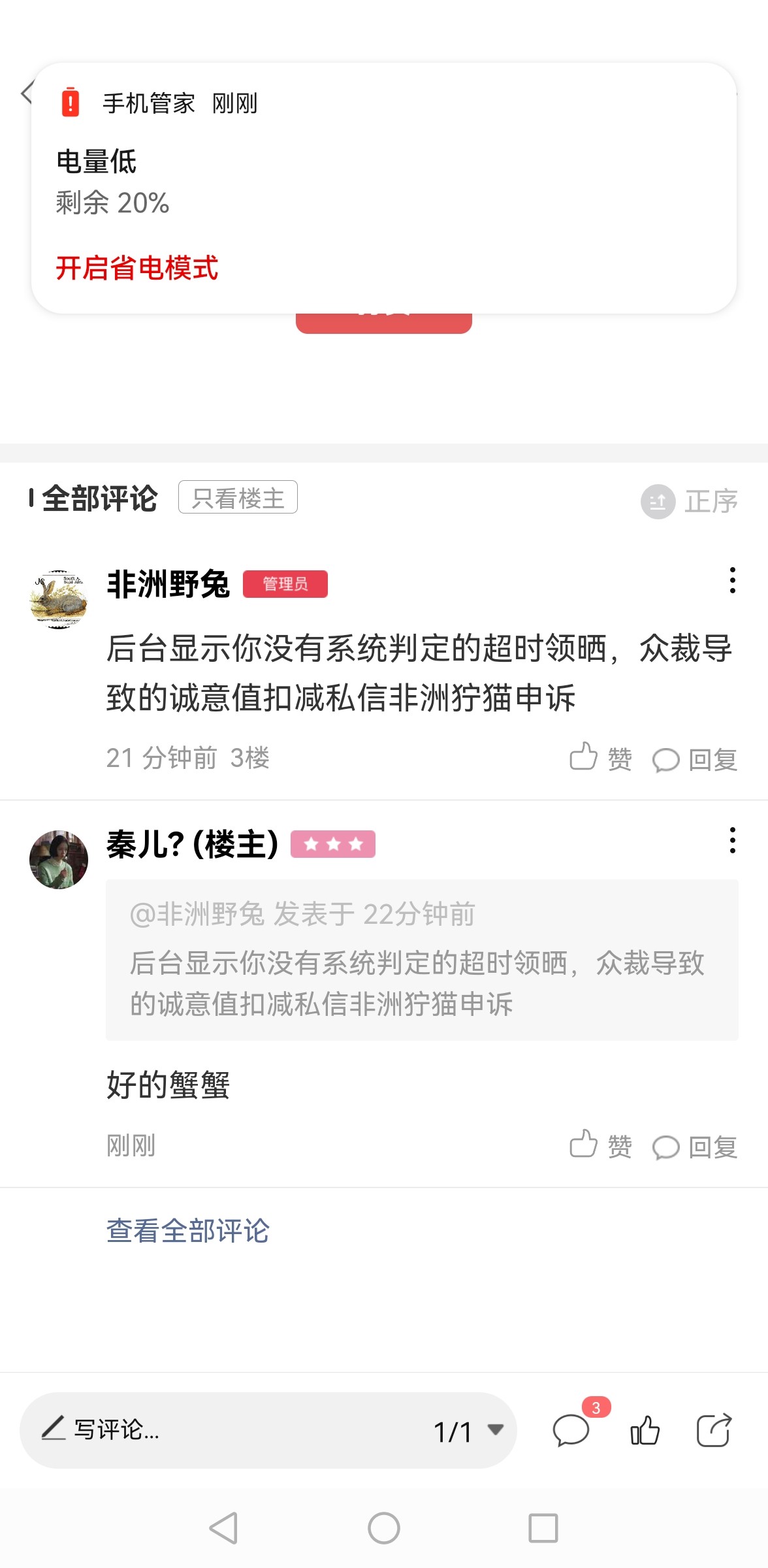 [已处理(发帖勿选)] 有劳泞猫核实加回20分诚意值 蟹蟹 |