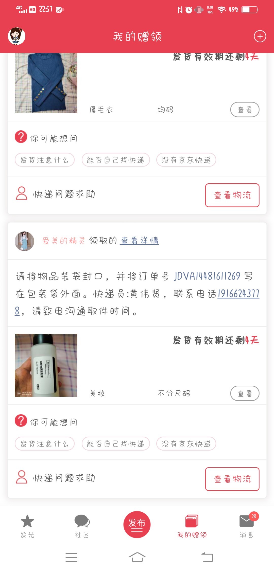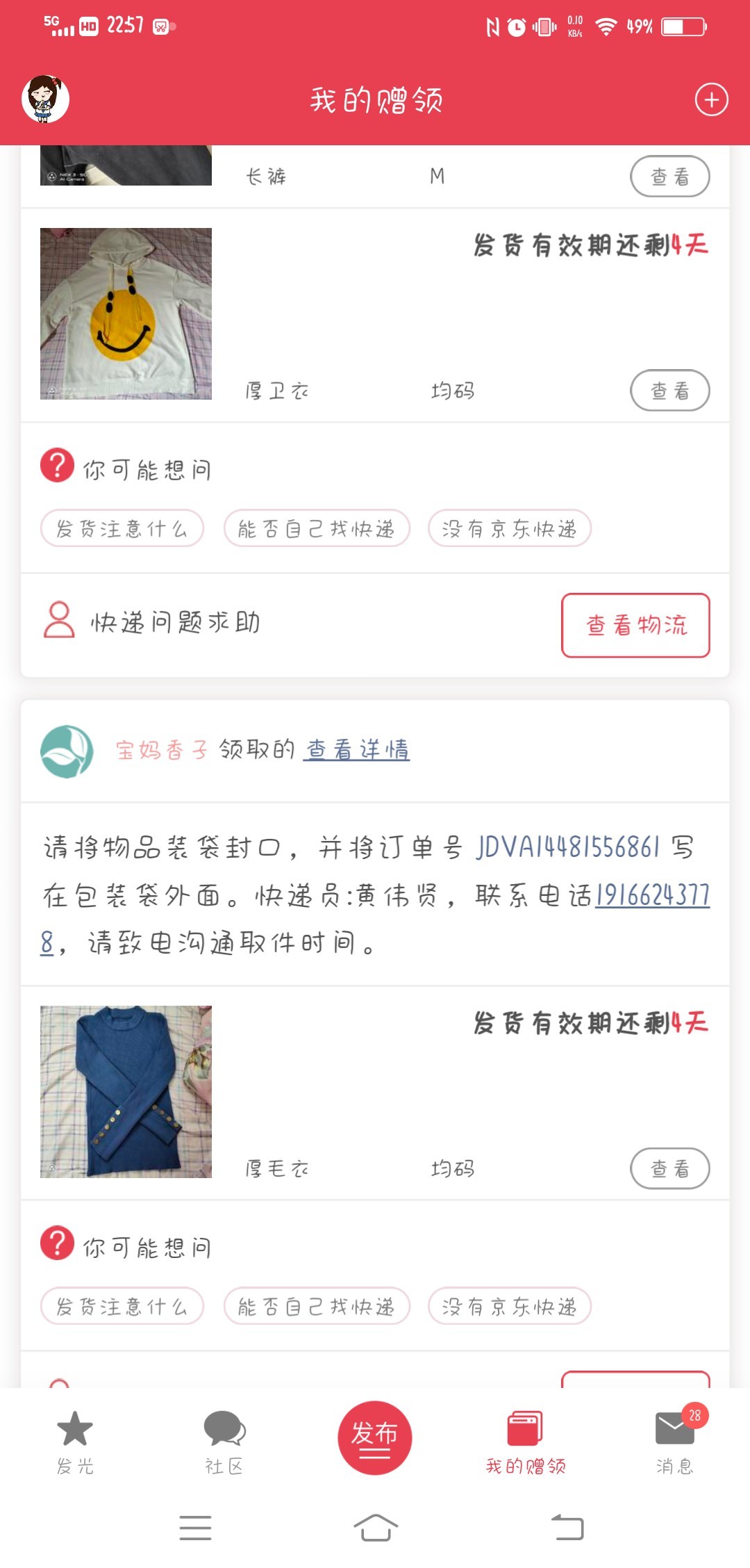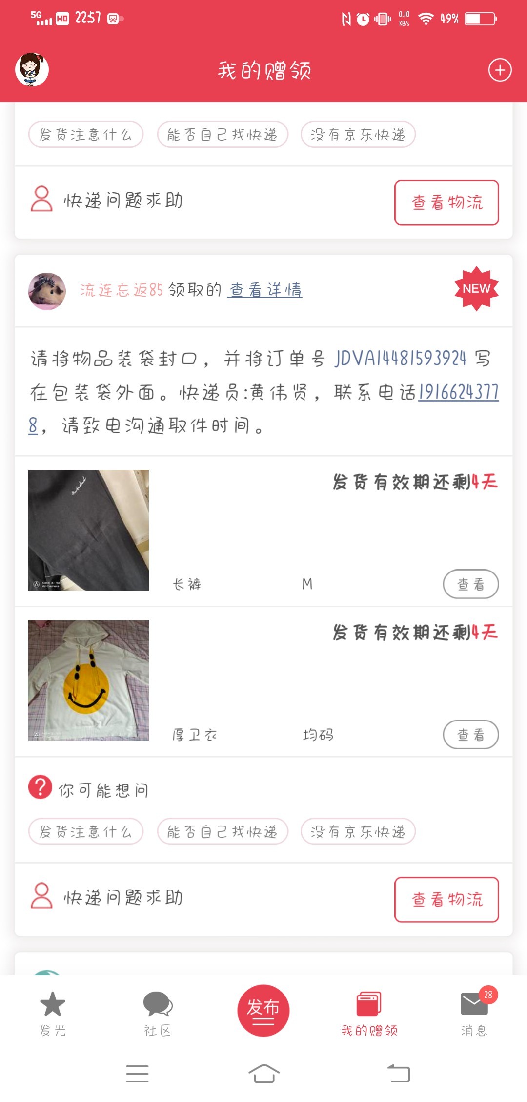[已处理(发帖勿选)] 快递物流没有更新,我这里显示没有发货。 |