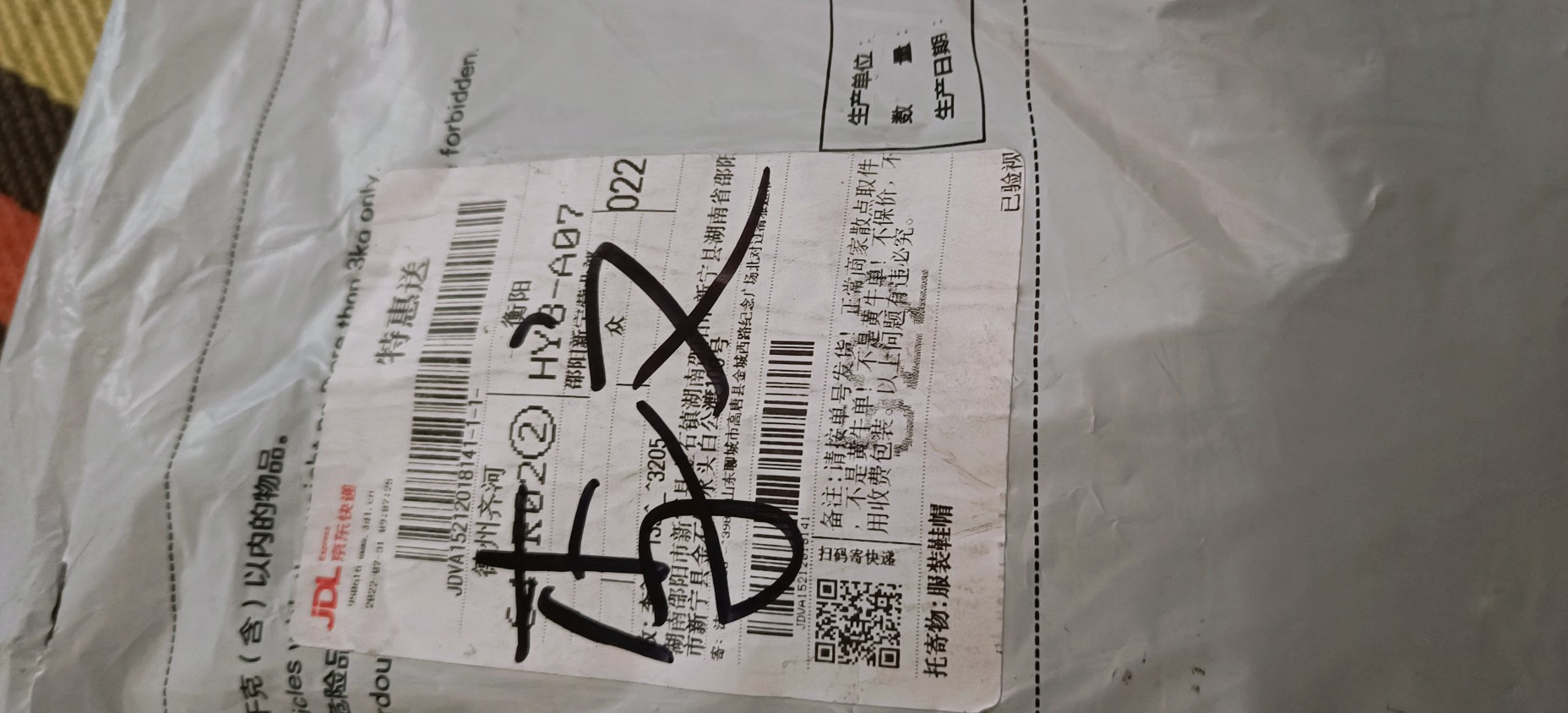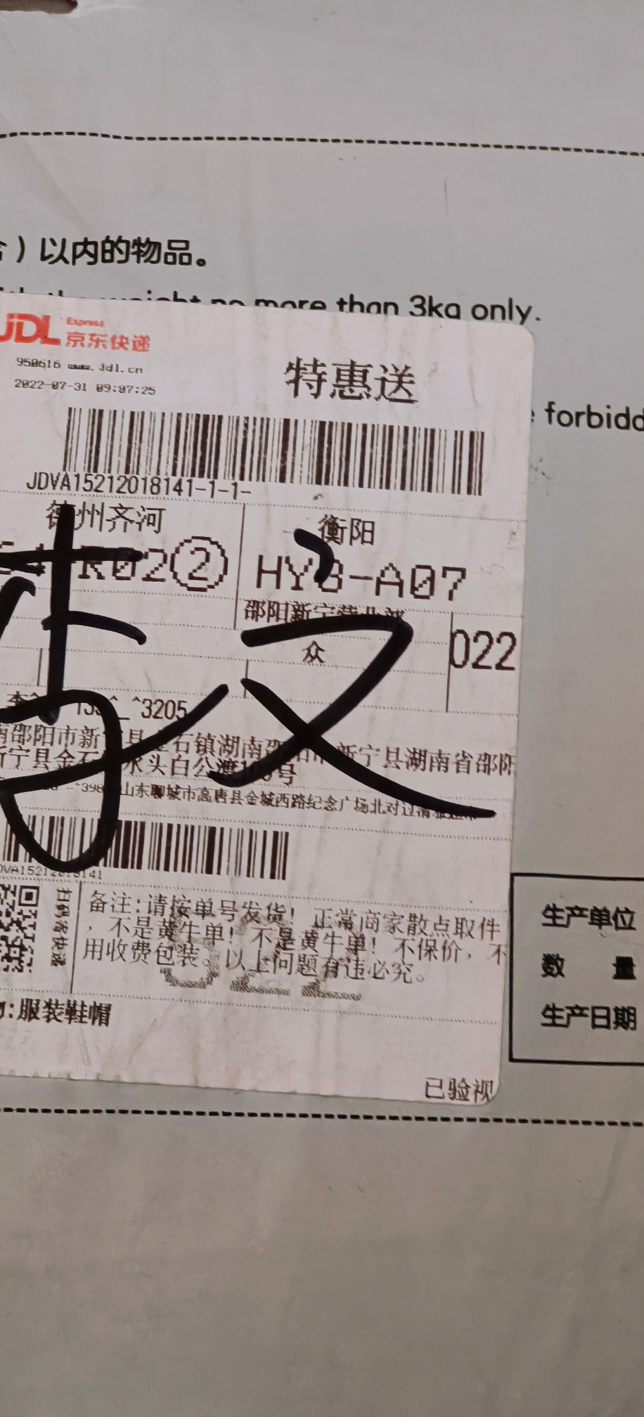 [已处理(发帖勿选)] JDVA15212018141+待提供体积 称重 |
