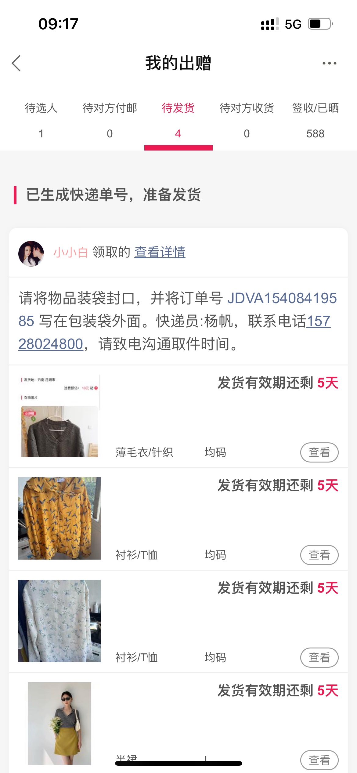 [已处理(发帖勿选)] JDVA15317418191+待揽收 |