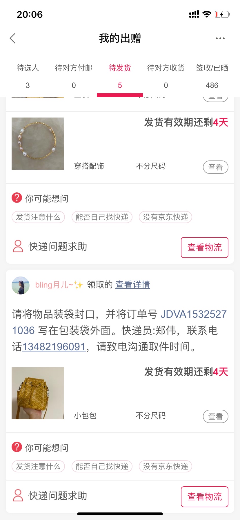 [已处理(发帖勿选)] JDVA15325255580+待揽收 |
