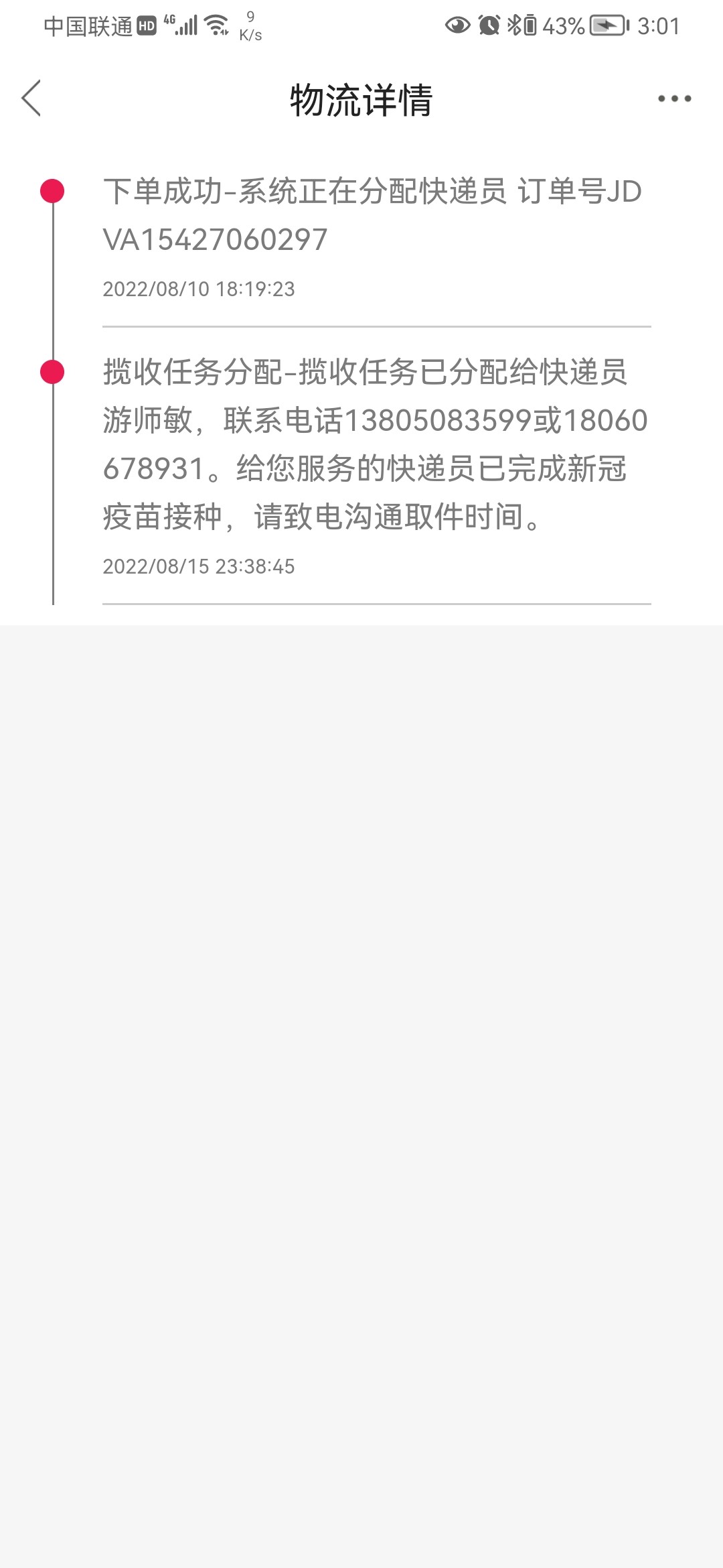 [已处理(发帖勿选)] JDVA15427060297+待揽收 |