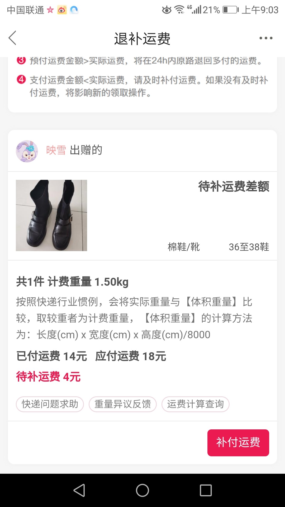 [已处理(发帖勿选)] 补运费的问题 |