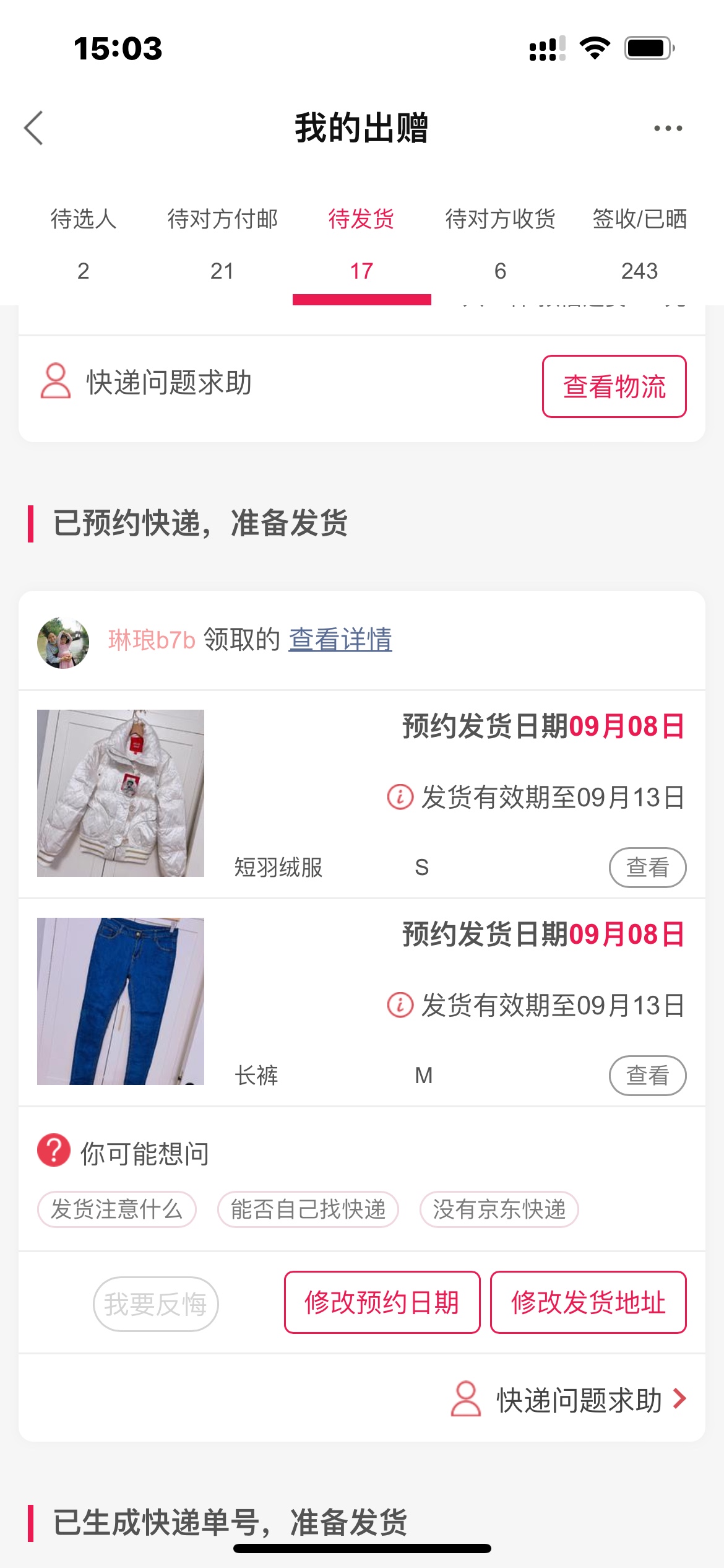 [已处理(发帖勿选)] 这个预约了快递 没有生成单号。 |