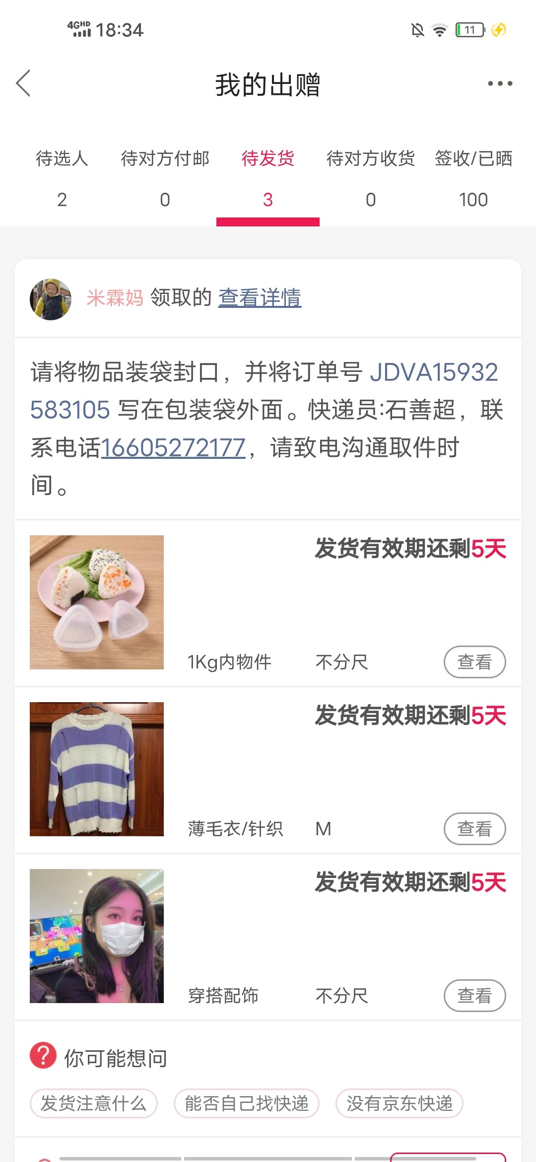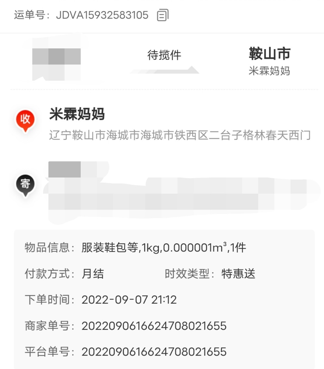 [已处理(发帖勿选)] JDVA15932583105+待揽收 |