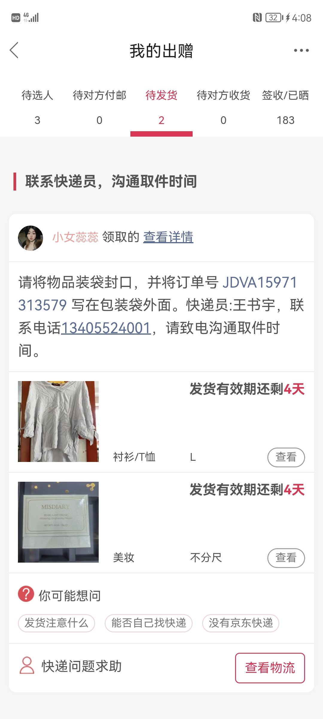 [已处理(发帖勿选)] 件已经取走,后台无显示物流状态 |