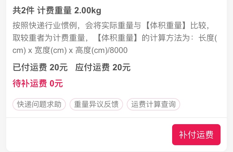 [已处理(发帖勿选)] 补付运费金额为零 |