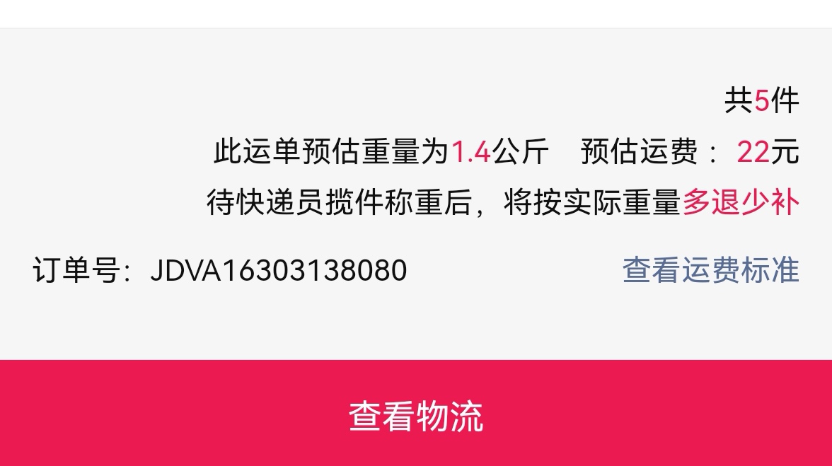 [已处理(发帖勿选)] 重量不对多收运费JDVA16303138080 |