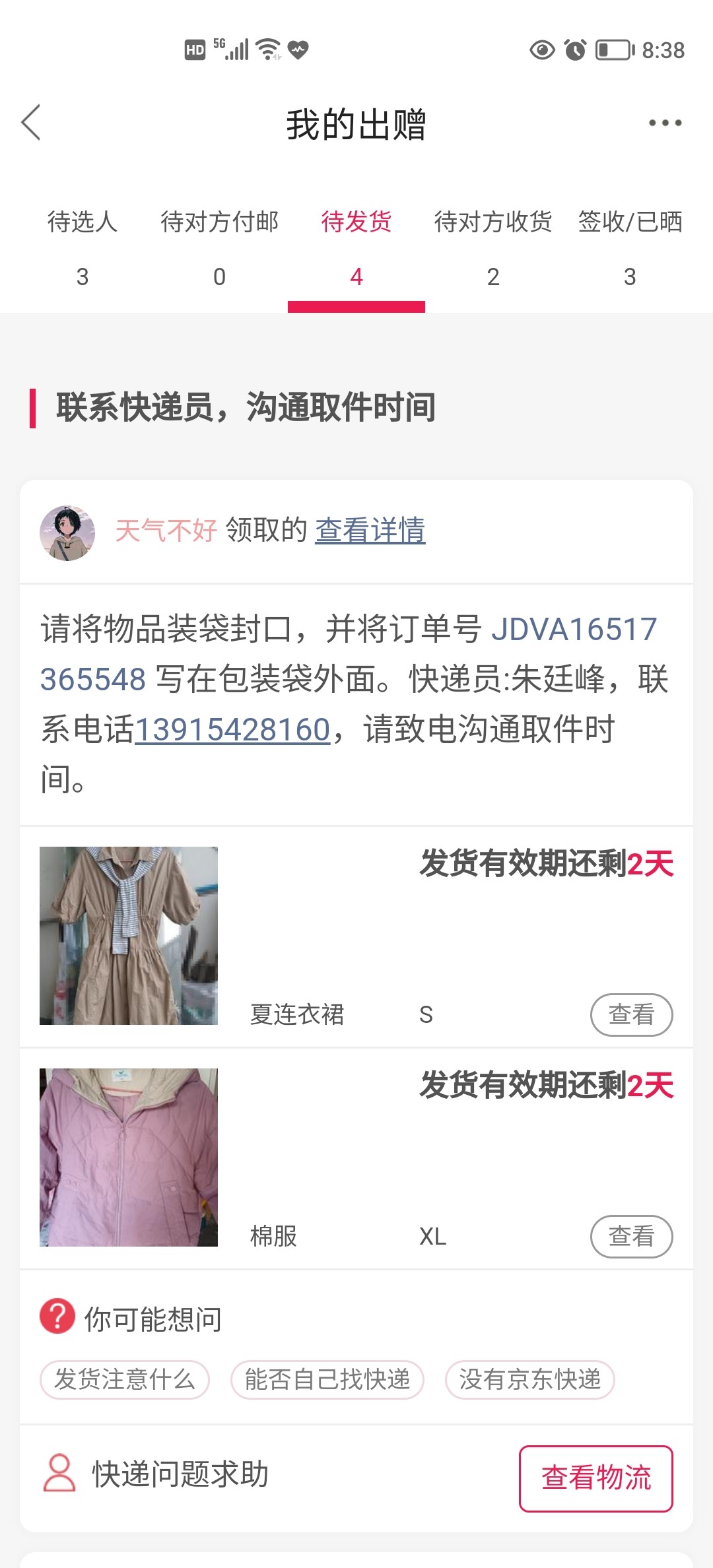 [已处理(发帖勿选)] 预约成功快递,一直没有人来拿。今天第5天了 |