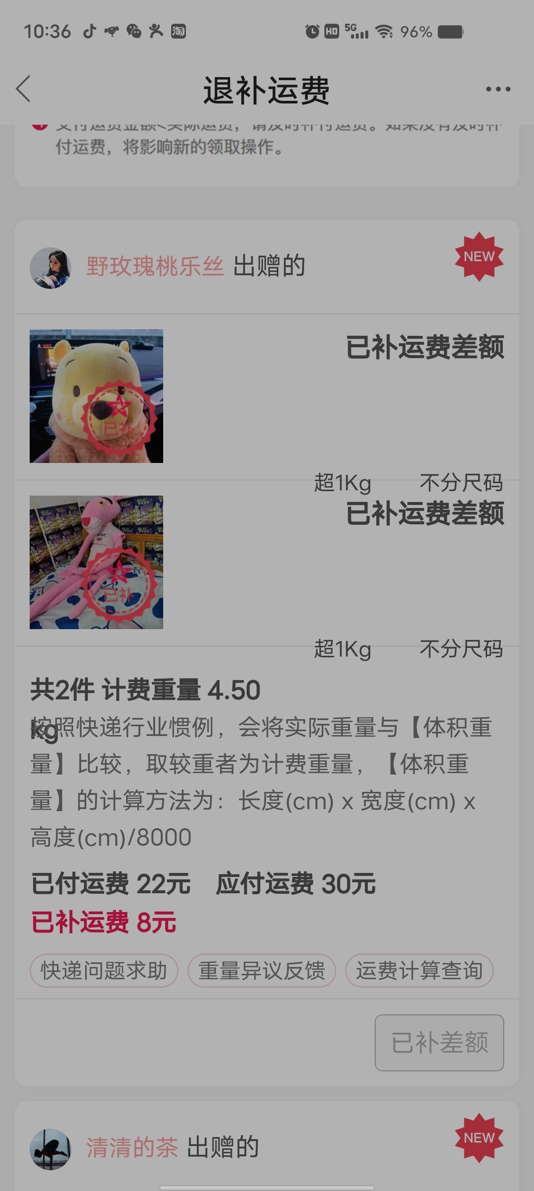 [已处理(发帖勿选)] 运费+补体积 |