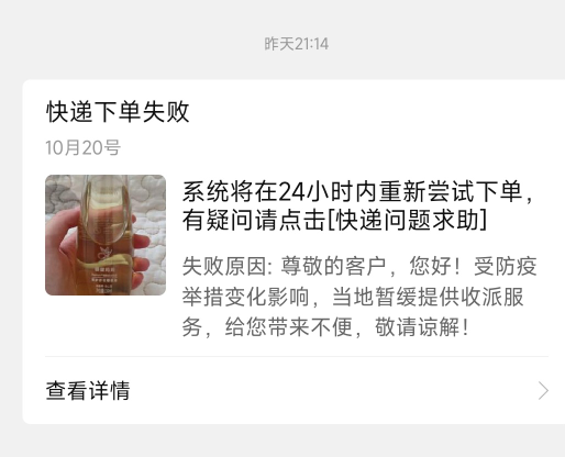 [已处理(发帖勿选)] 快递下单失败 |