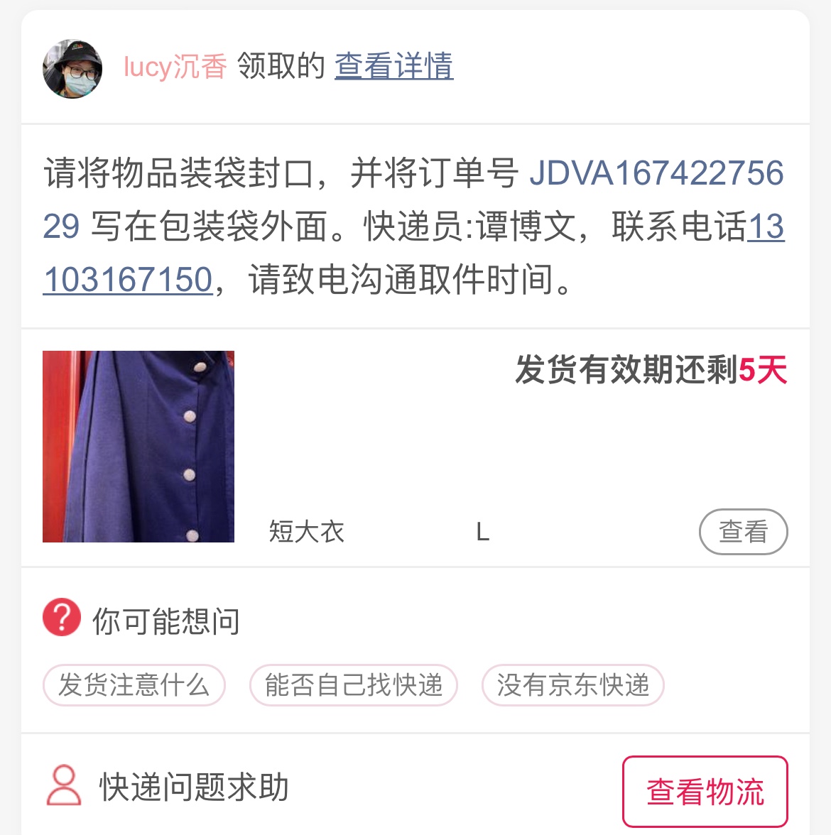 [已处理(发帖勿选)] 我更改为了北京发货,北京的京东小哥说这单快递,他本... |