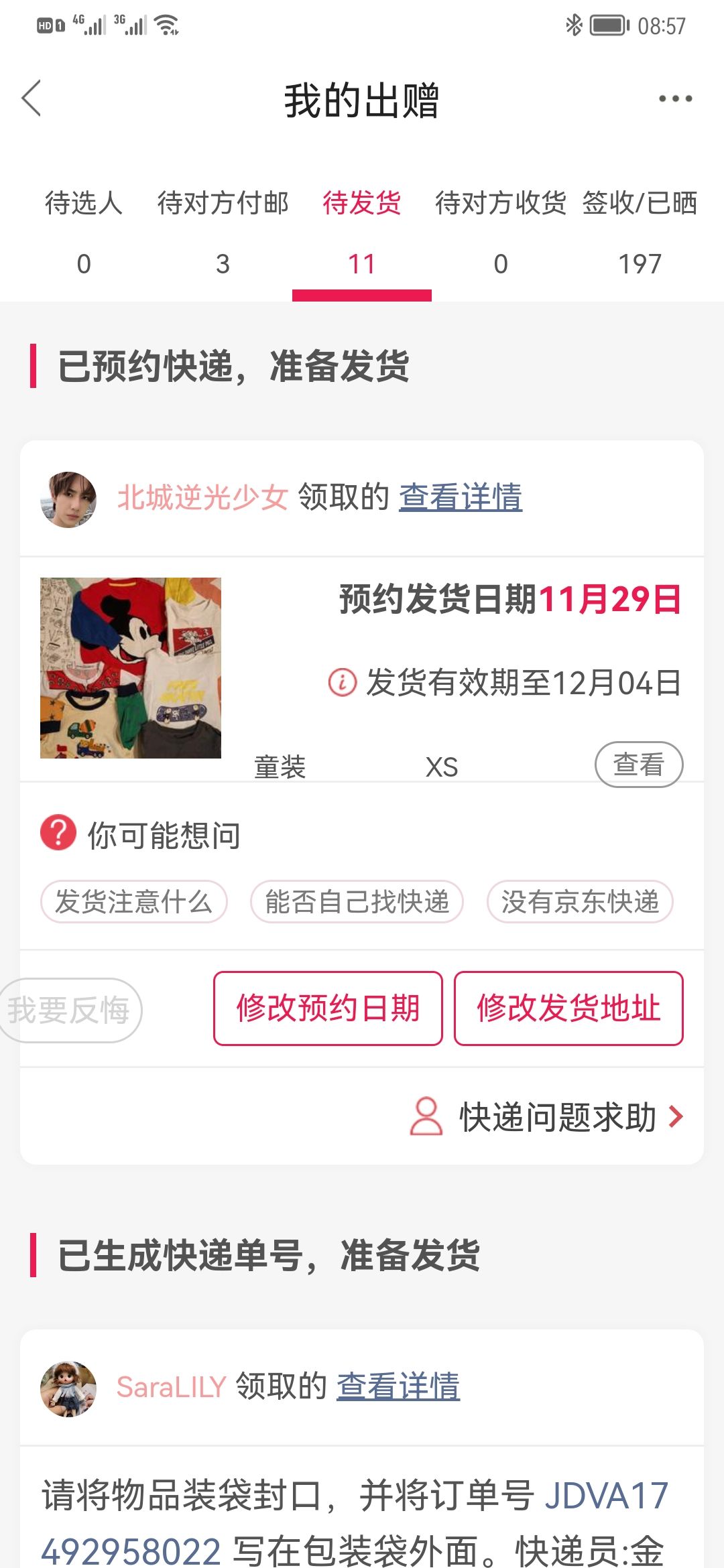[已处理(发帖勿选)] 领取人已支付且已约快递,无法生成快递单号 |