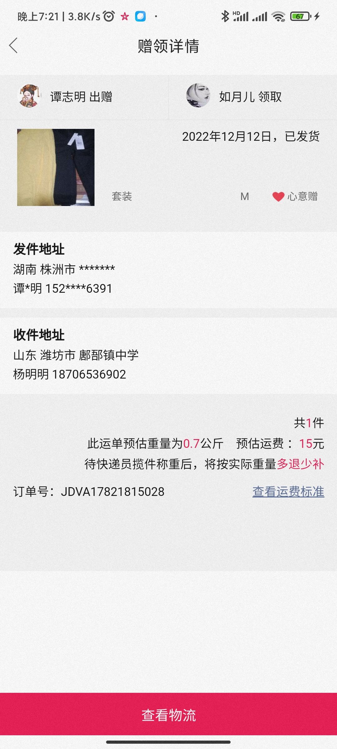 [已处理(发帖勿选)] 错件,快递把我和另个姐妹的衣服发错了,申请互换 |