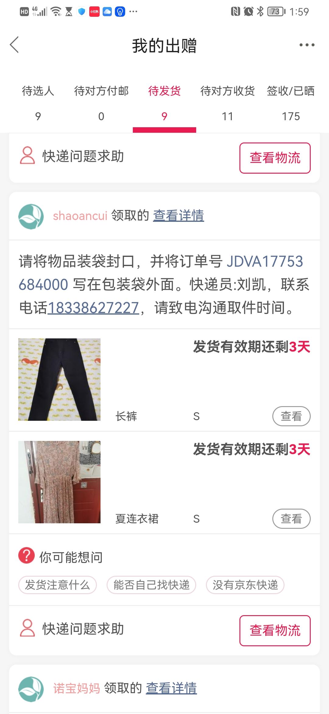 [已处理(发帖勿选)] JDVA17753697471快递员说没有这两个下单记录不能取件。 |