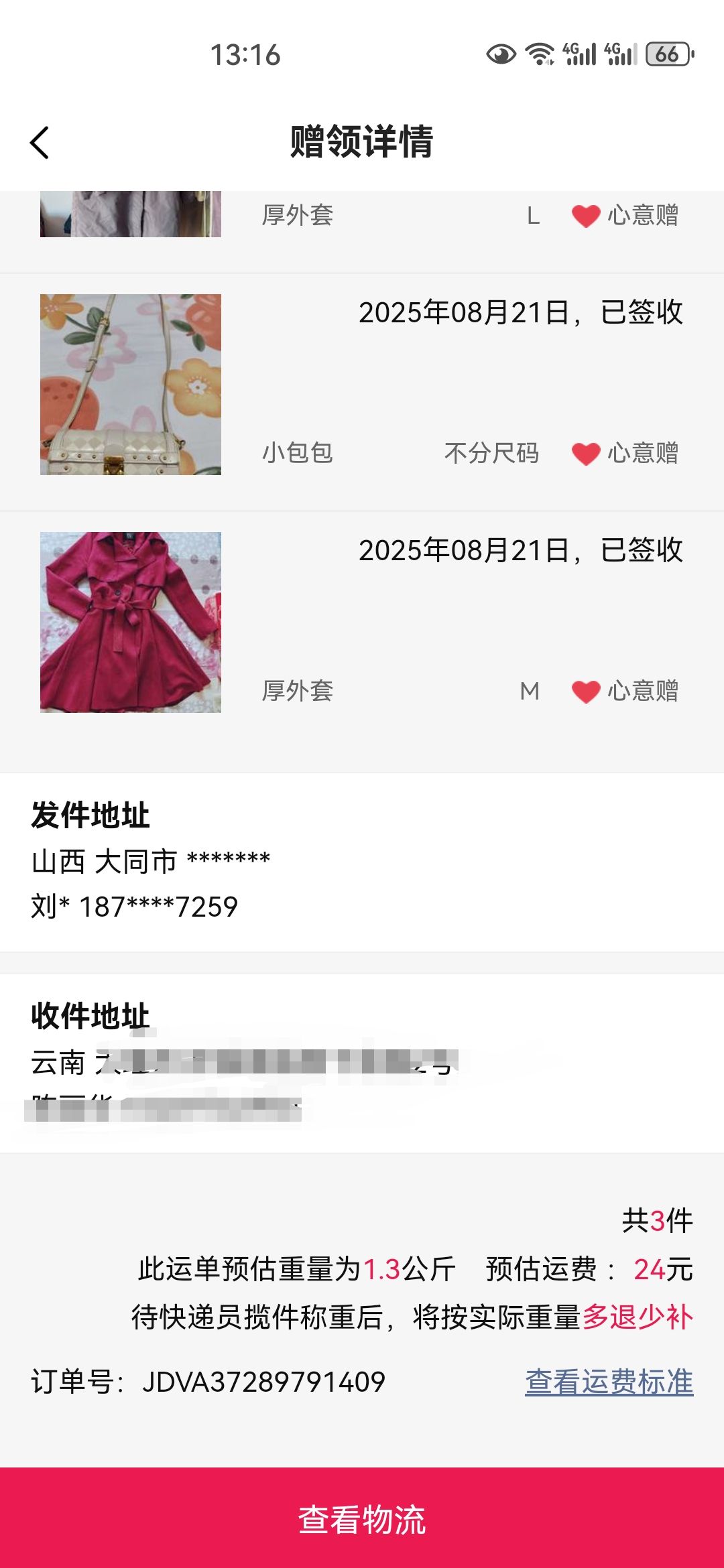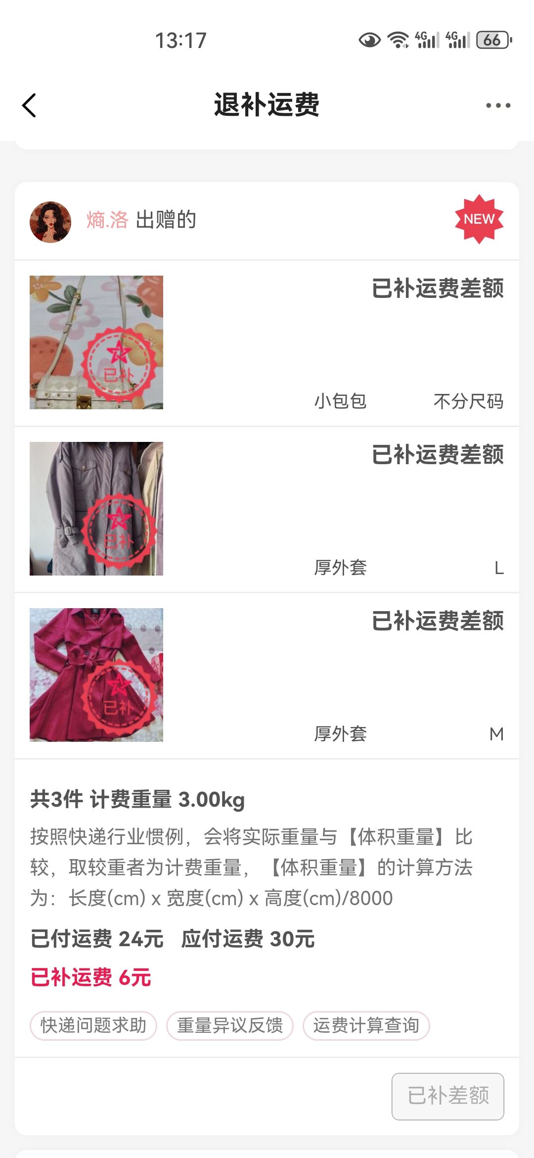 [已处理(发帖勿选)] 单号JDVA37289791709-1-1实际称重2.94kg,不到3kg。 |