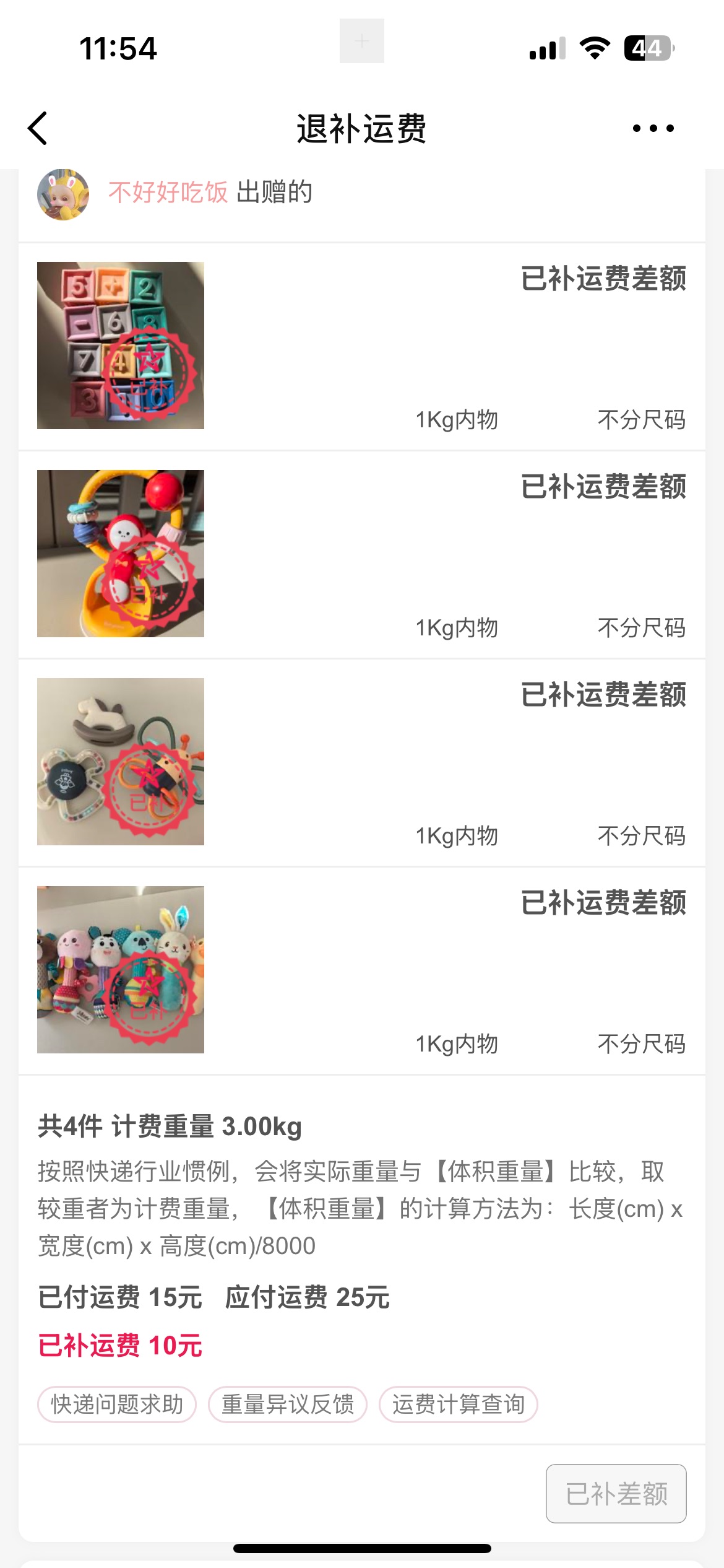 [已处理(发帖勿选)] 请求退回多付的运费 |