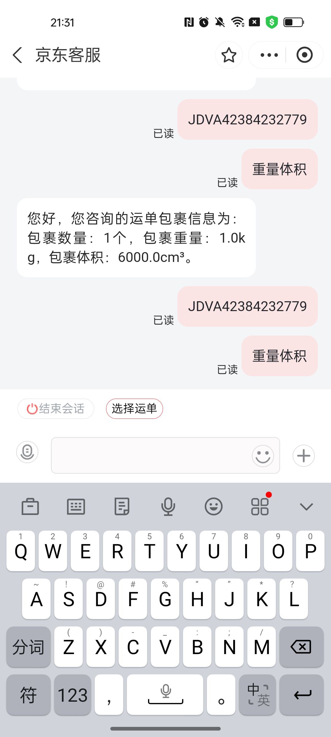 [已处理(发帖勿选)] 这个快递没有超重 |
