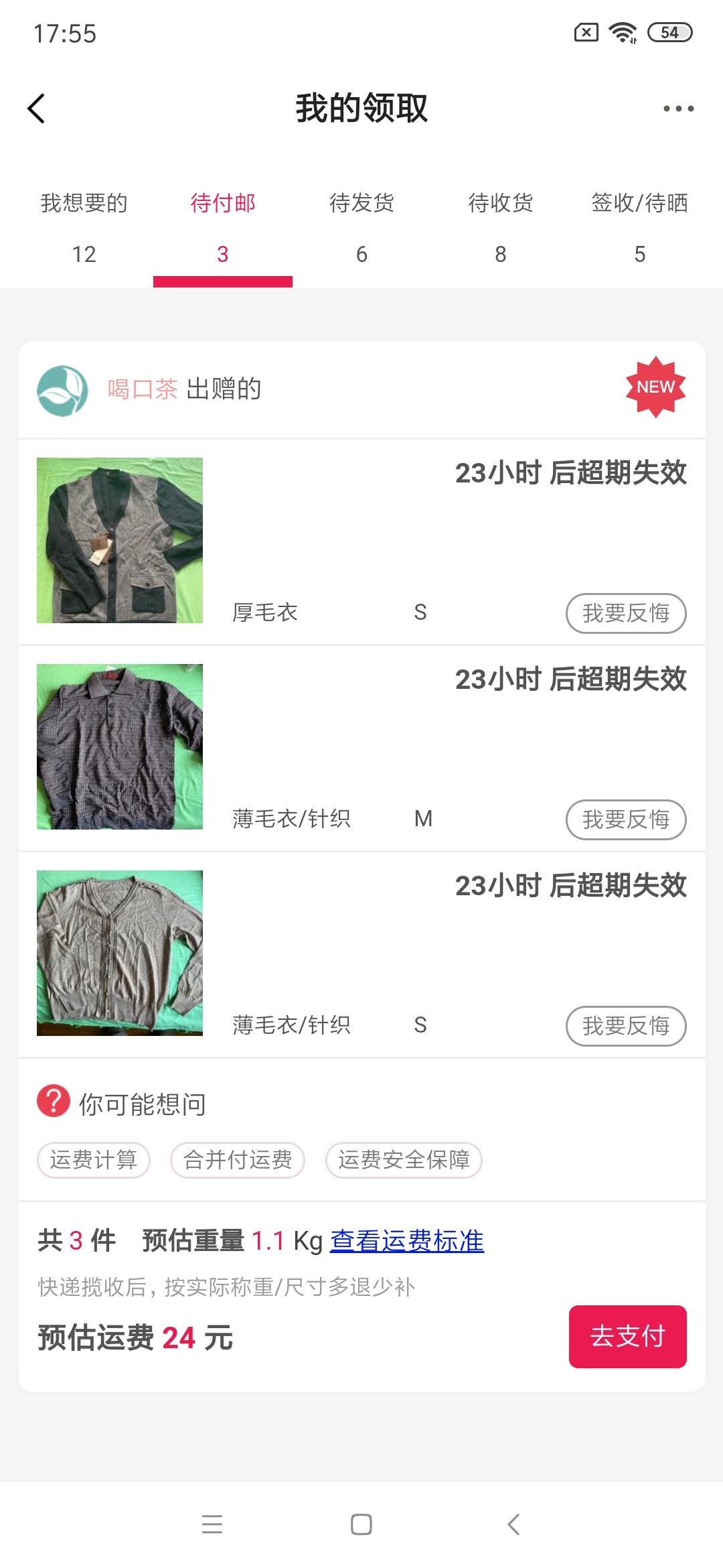 [已处理(发帖勿选)] 退运费JDVA42951708481 |