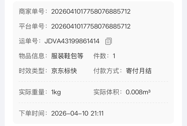 [已处理(发帖勿选)] JDVA43199861414退运费 |