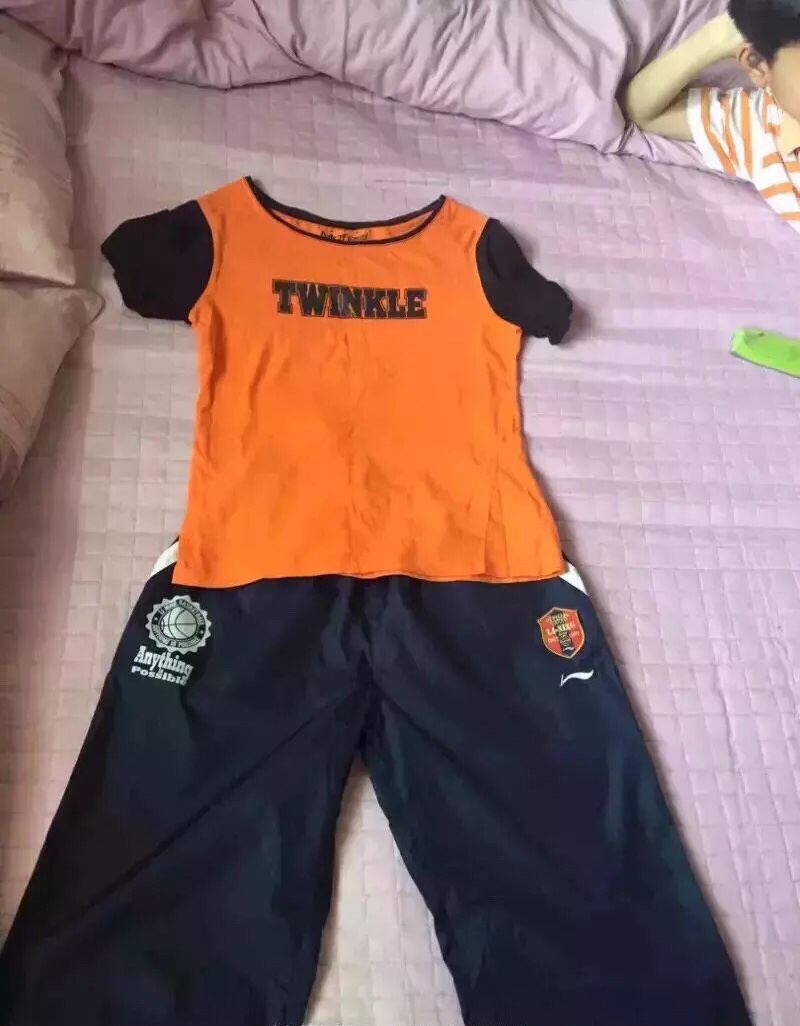 7,8,上衣菲儿实体店,薄体恤S码,裤子是李宁非棉质,SM码,我穿立裆浅,所以自己DiY了一下,加深了立裆,穿了两次洗了两次,不适合我