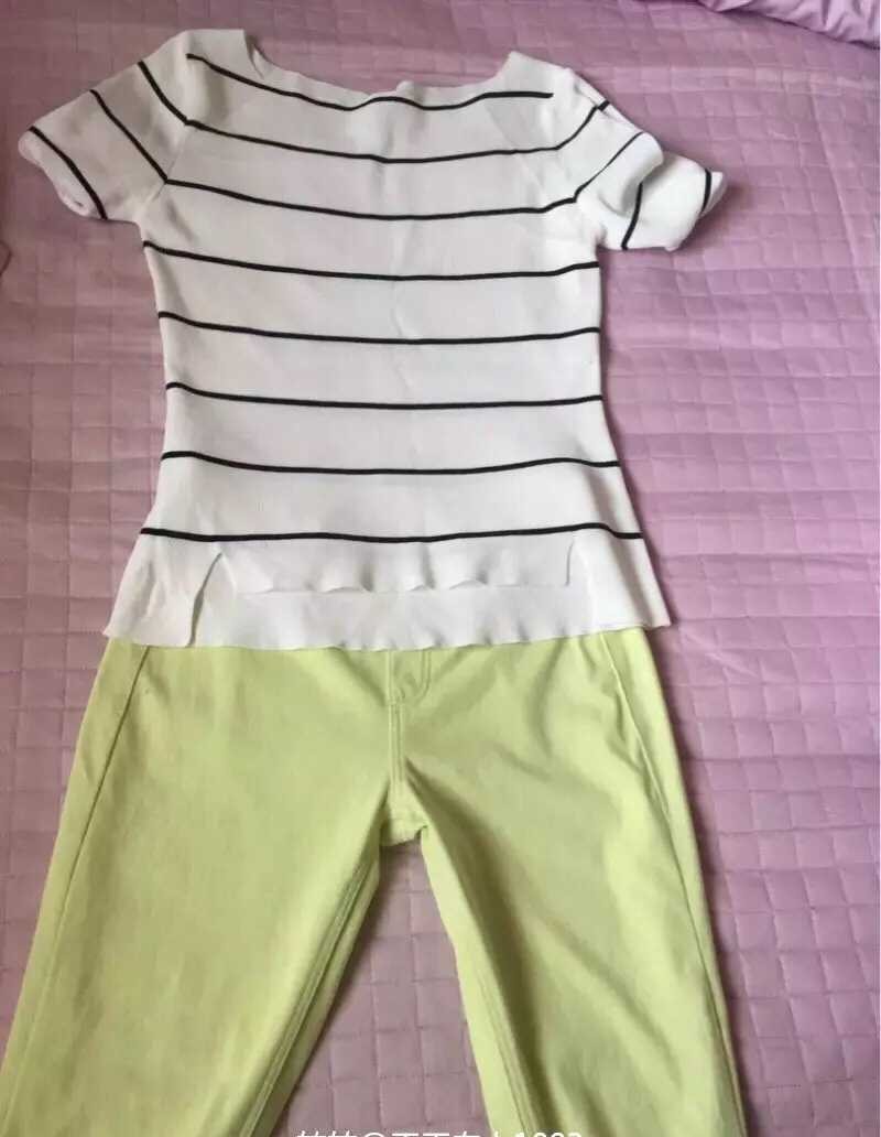 5,6,上衣淘宝针织中袖,没穿几次,因为我必须纯棉质面料衣服,这是冰丝面料,M码。裤子是优衣库实体店买的,S码,2尺腰以内的穿吧,我现在都2尺1的腰了,肚子减不下去,放弃
