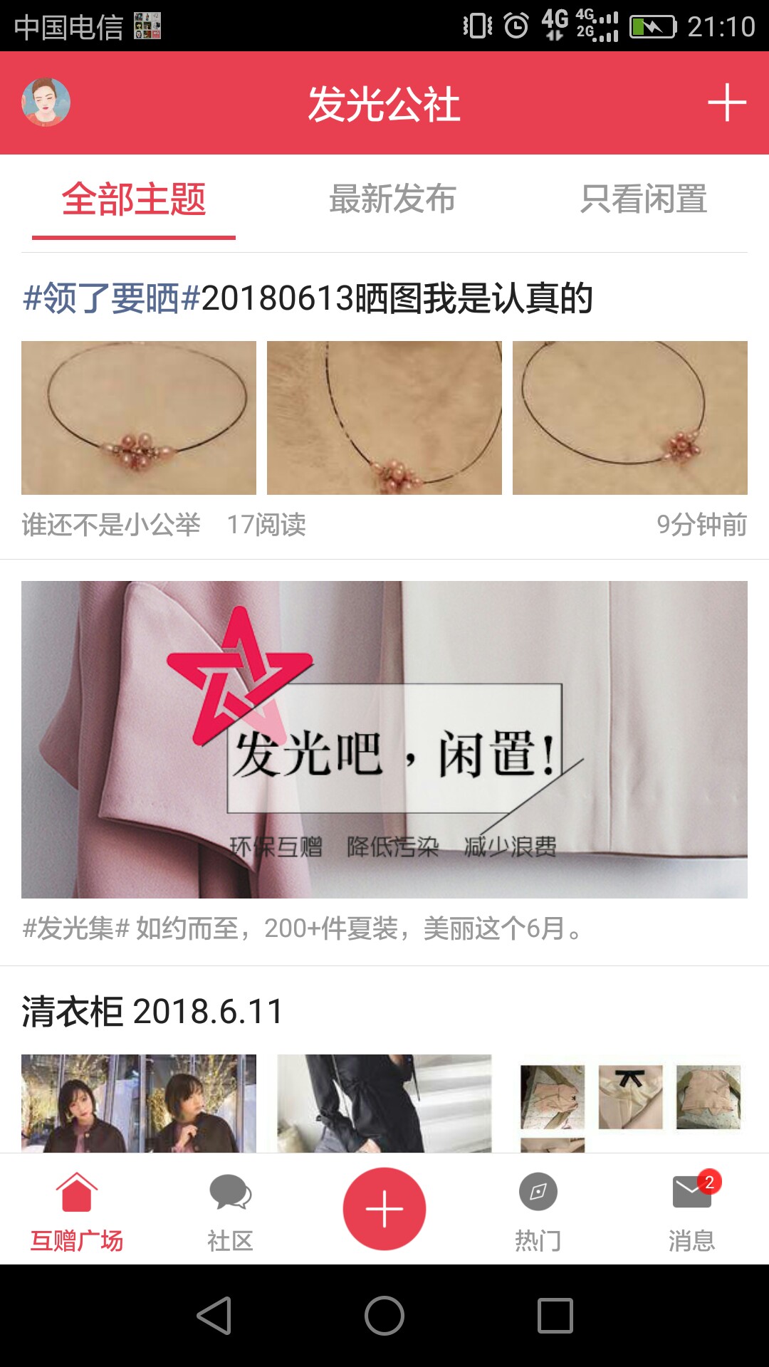 发光公社,是一个具有开创意义的女性闲置免费互赠社区。你之闲置,她之珍宝,不如互赠,让挤爆衣柜的闲置重新发光。无私的赠予和开心的接受,都是对资源的珍视和对环境的关爱。