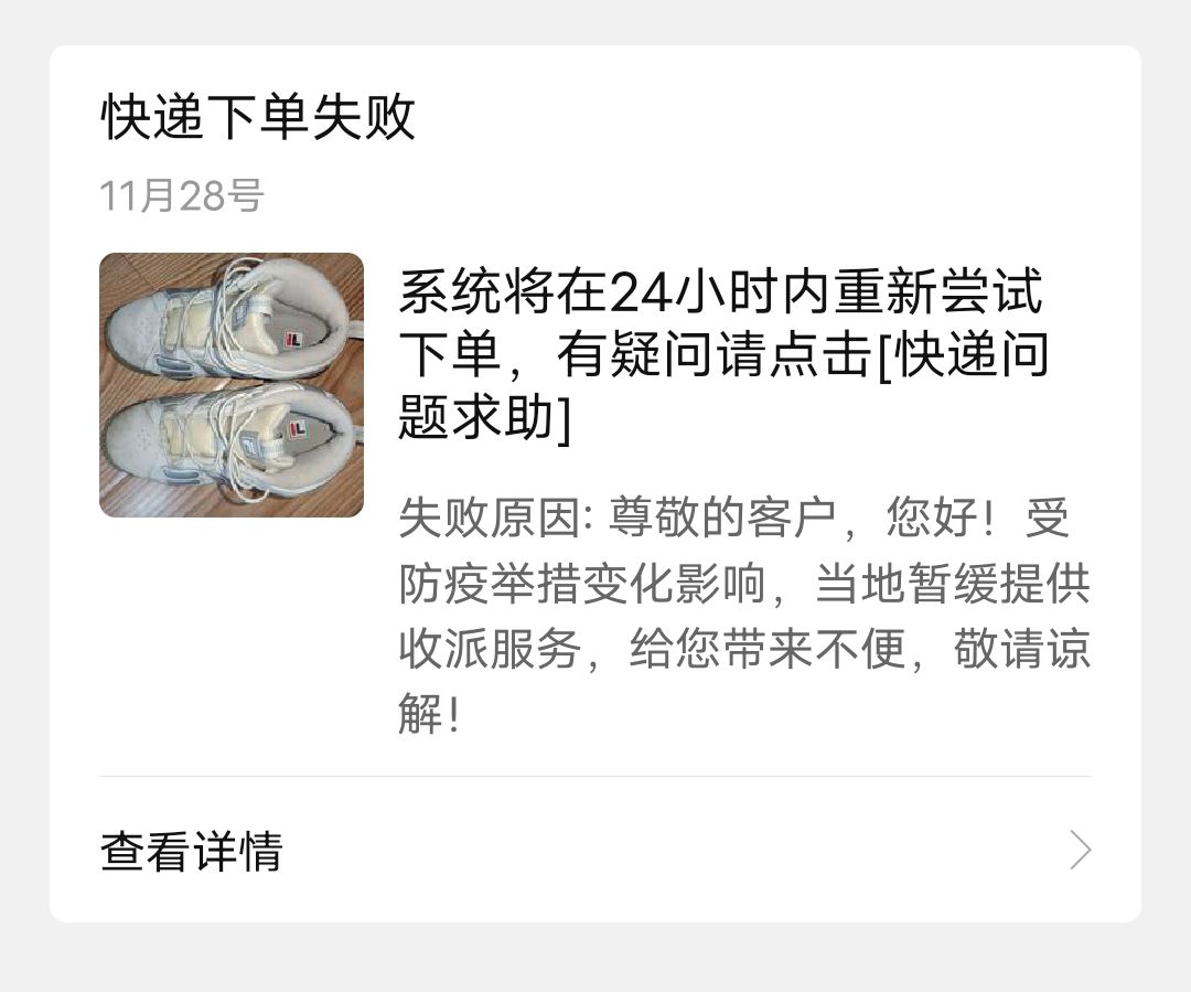 [已处理(发帖勿选)] 快递下单失败 |