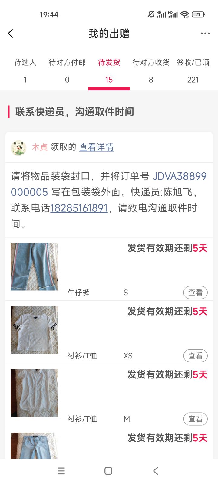 [修改地址] JDVA38899000005时间改成后天10月24日,谢谢野兔! |