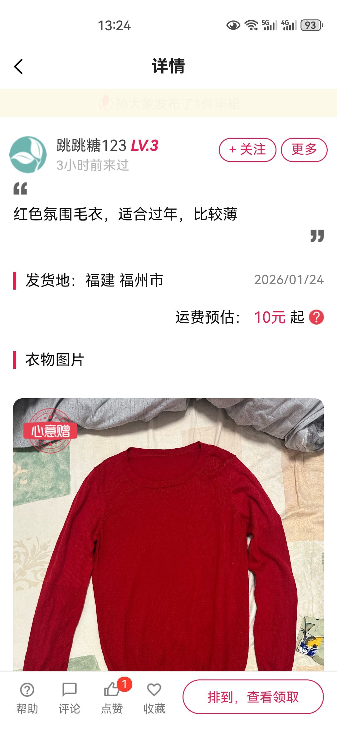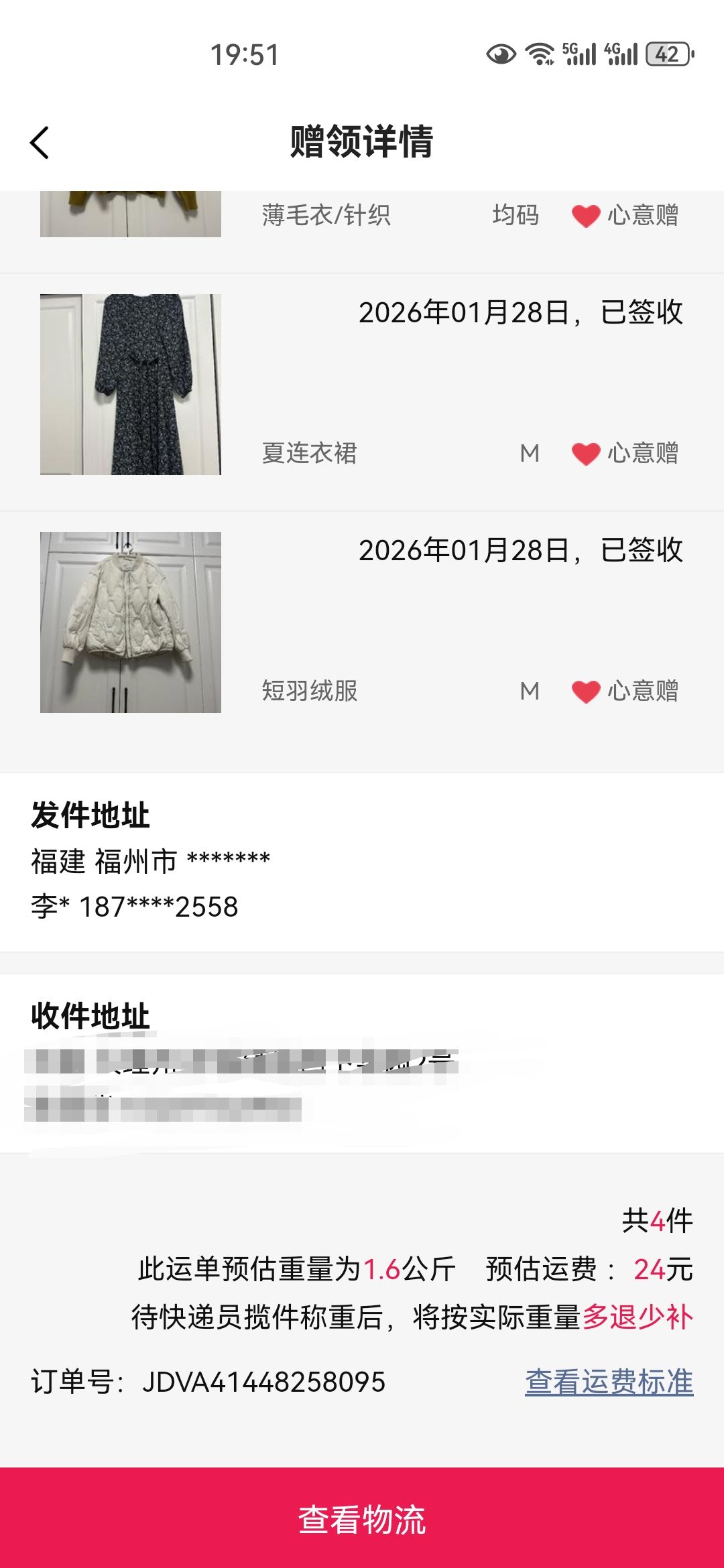 [已处理(发帖勿选)] JDVA41448258095少送一件衣服,实际重量1.03kg,多收6元运费。 |